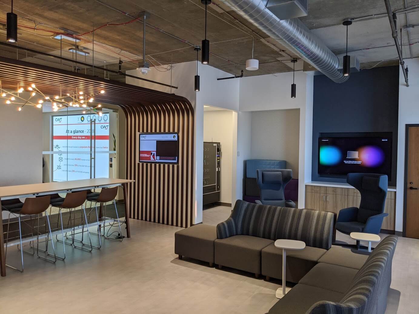The biggest challenge for the client on this project was obtaining buy in from all the department heads and exciting the staff about the changes to come. Our client’s leadership was shifting forward 30 years, literally, in their workplace design and they needed to sell it. Before the phased renovation began, we developed a 2 minutes video presentation/walkthrough that showed all of CWT what their future looked like. Once released, we were told that there was a new buzz of anticipation and excitement throughout the organization and the renovation proved a great success for the future of “My CWT!”