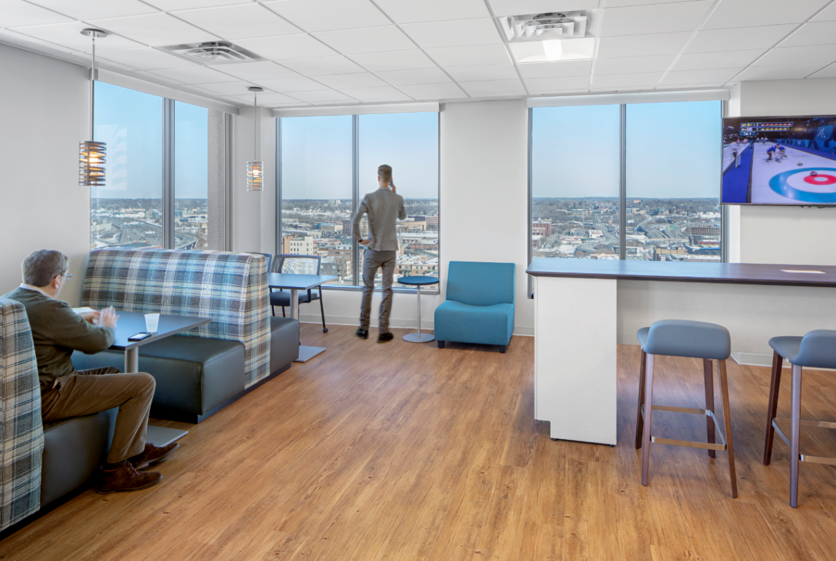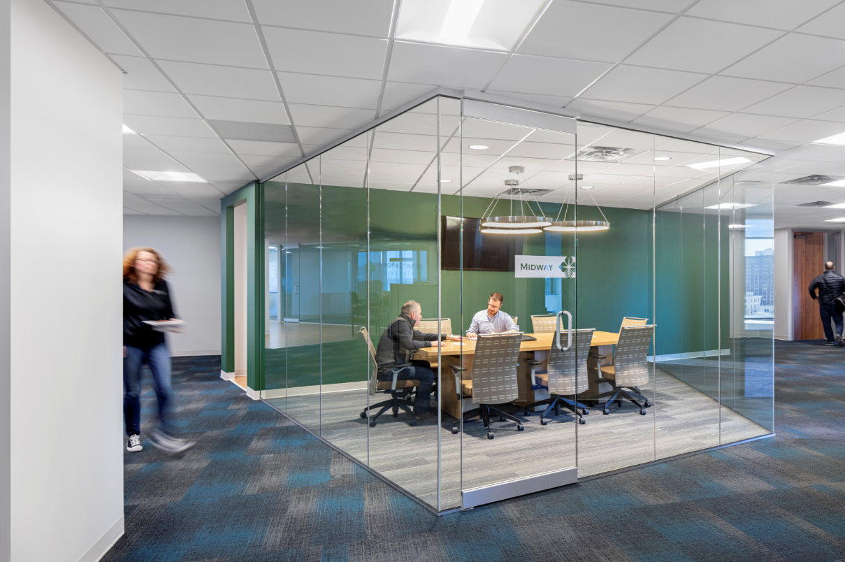 The next step was to find the right location. Working with their brokers we provided preliminary analysis and fit planning services for 5 potential buildings. We helped them weight the pros and cons for each property and provided preliminary construction pricing. This was the unique offering of Unispace as a design-build general contractor. My team worked with our construction estimator to provide a solid rough order of magnitude budget to help better inform site selections. In the end they chose Town Square Tower in downtown St. Paul based upon the cost projections, easy use of the space and the elevation of the suite on the 17th floor. The scenes of the city were a real draw to the property particularly for Tom Levasseur, President of ProPartners, who appreciated having an amazing view of the state capital building to the Northwest every day.