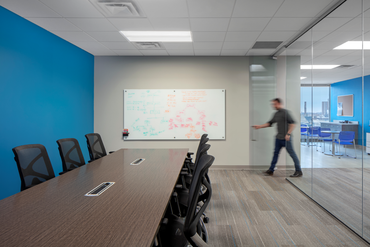 At Unispace it was standard practice to model all our projects in Revit, not only to produce construction documents, but throughout the design development process. As with all our work, the model was the basis for exploration through 3D fit planning, schematic design, design development, documentation and presentation. All iterations and options remained in the model until the project was complete because, as was the case again this time, our clients came full circle back to a form of the original design we presented. We worked through numerous layouts, with various finish schemes and furniture configurations, so that the client understood what the outcome would be, in full detail and felt certain when they made their final decision. In the end, we designed and built a dynamic suite that was not only functional and beautiful but delivered on our clients schedule and budget.
