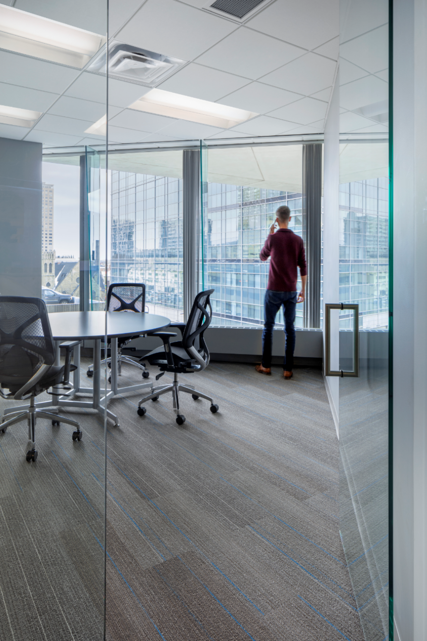 In 2015 Unispace had designed and built a 7000 SF office for Seabury Capital at 222 South 9th street. Within a year, consolidation had eliminated a large portion of the business in Minneapolis and the remaining members needed to downsize their space. They enjoyed the experience and the outcome of the original project, so they contacted our team again. I had not been involved with the initial design but having been elevated to Design Principal for the local studio I was introduced to the “Two Jeff’s” who were the remaining decision makers for this project. Being that they loved the location and wanted to stay in the building, but needed a lot less space, they had to move. We examined the current floor plan, but the way the suite laid out on the 32nd floor there was no way to carve out an appropriate space that would meet their needs going forward. They were disappointed but understood the situation and thankfully, the building had an offer for them. The space that was presented was on the 4th floor which didn’t provide the same dynamic views they were used too, but the adjusted rent rate and tenant improvement allowance they were offered was enough for them to sign the lease.